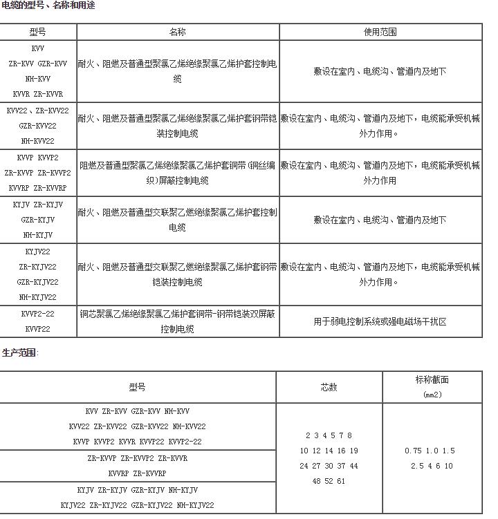 KVV型聚氯乙烯絕緣聚氯乙烯護(hù)套控制電纜